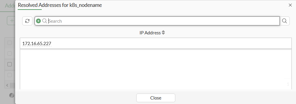 Hover over the just created address and click View Matched Addresses in the pop up to see a list of IP addresses for node instances that match the node name: