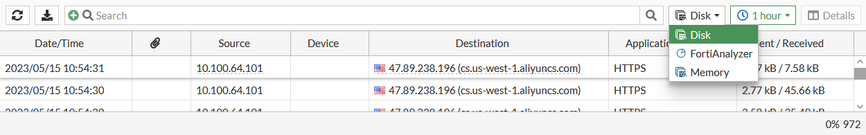 Go to Log & Report, and select either the Forward Traffic, Local Traffic, Sniffer Traffic, or ZTNA Traffic views.
