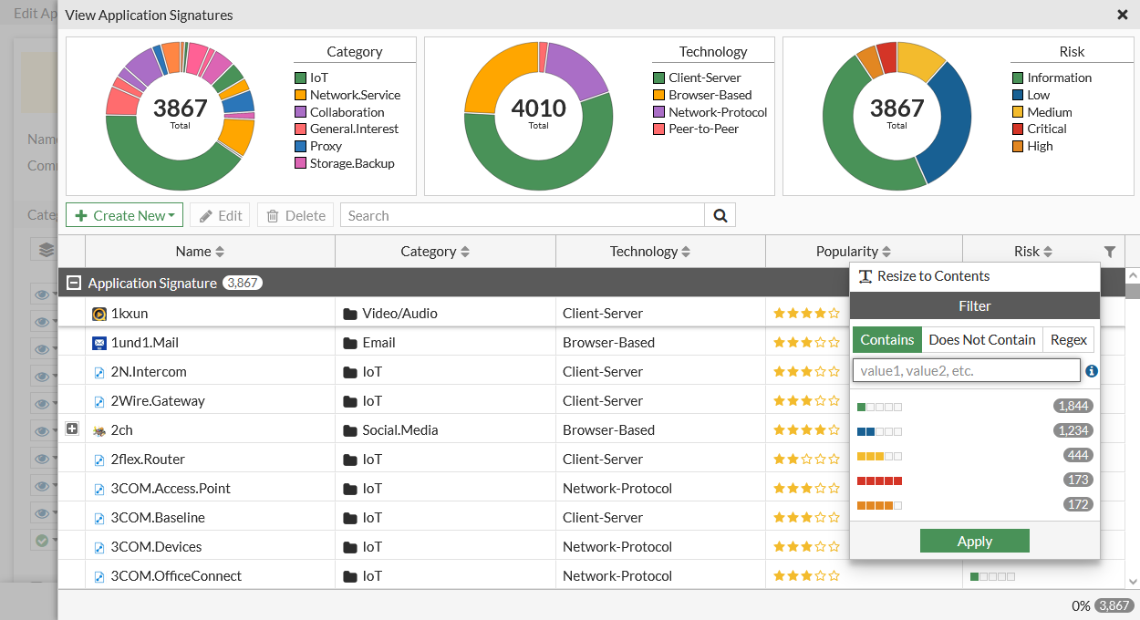 Select an Application Control profile that is used by the firewall policy and click Edit.
