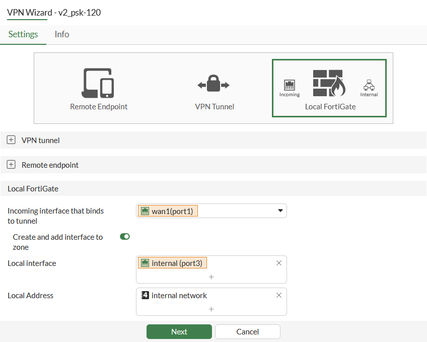 Under Local FortiGate section, enter the following: