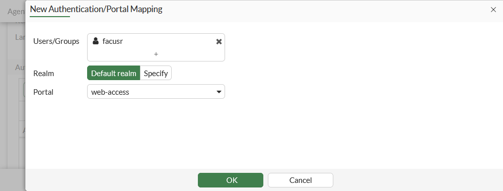 config vpn ssl settings config authentication-rule edit 1 set users "facusr" set portal "web-access" next end endThe user group that the SAML user was added to could also be used:
