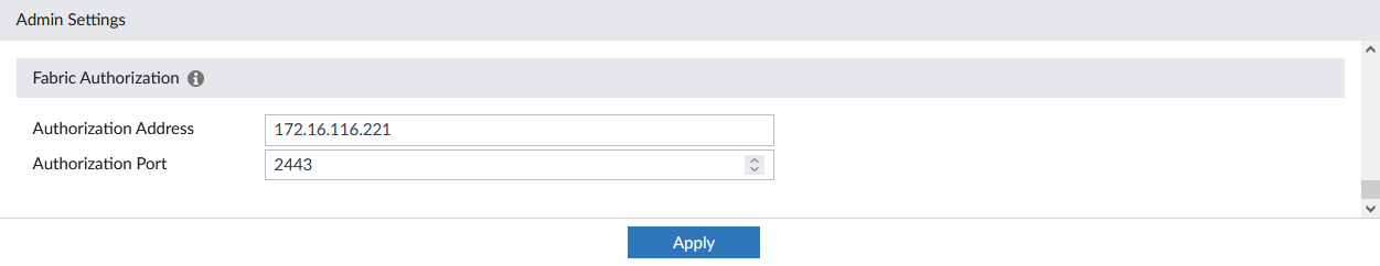 In the Fabric Authorization section, enter an Authorization Address and Authorization Port. This is used to access the FortiAnalyzer login screen.