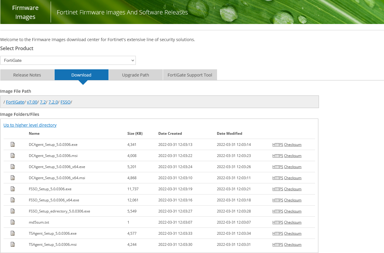Browse to the appropriate directory for the version of the FSSO agent that you need to download.