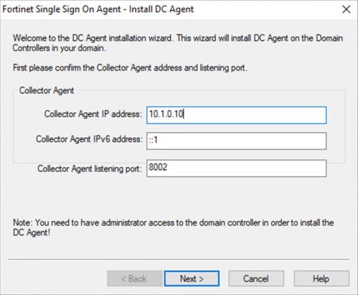 Update the Collector Agent IP address and listening port as needed, then click Next.
