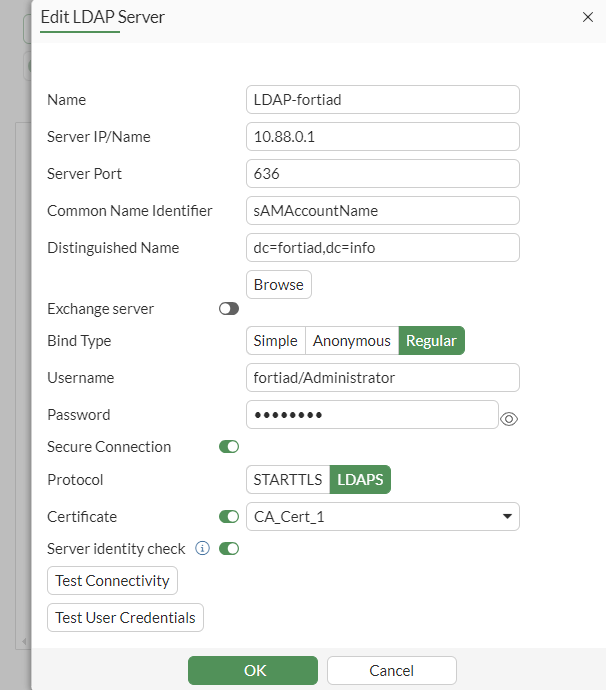 Set Remote Server to LDAP-fortiad.