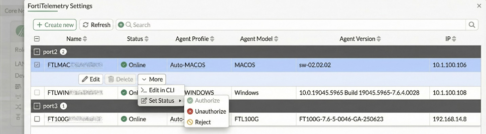 By default, automatically discovered telemetry agents are unauthorized, but you can authorize each agent after it connects to FortiGate.