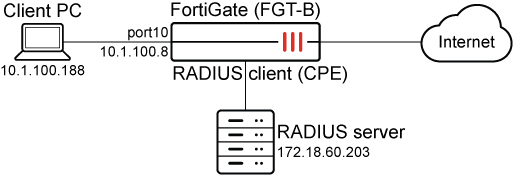 The FortiGate will use the Client PC IP address as the credentials for authentication. If successful, this will be followed by a RADIUS accounting start message.