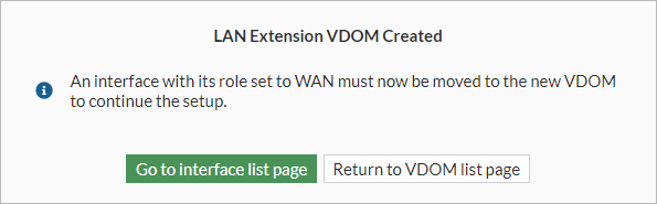 4. Click Go to interface list page to assign a role (LAN or WAN) and the LAN extension VDOM.