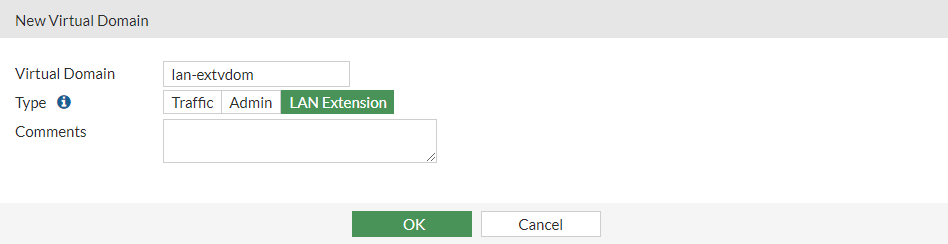2. Enter a name (lan-extvdom) and set the Type to LAN Extension.