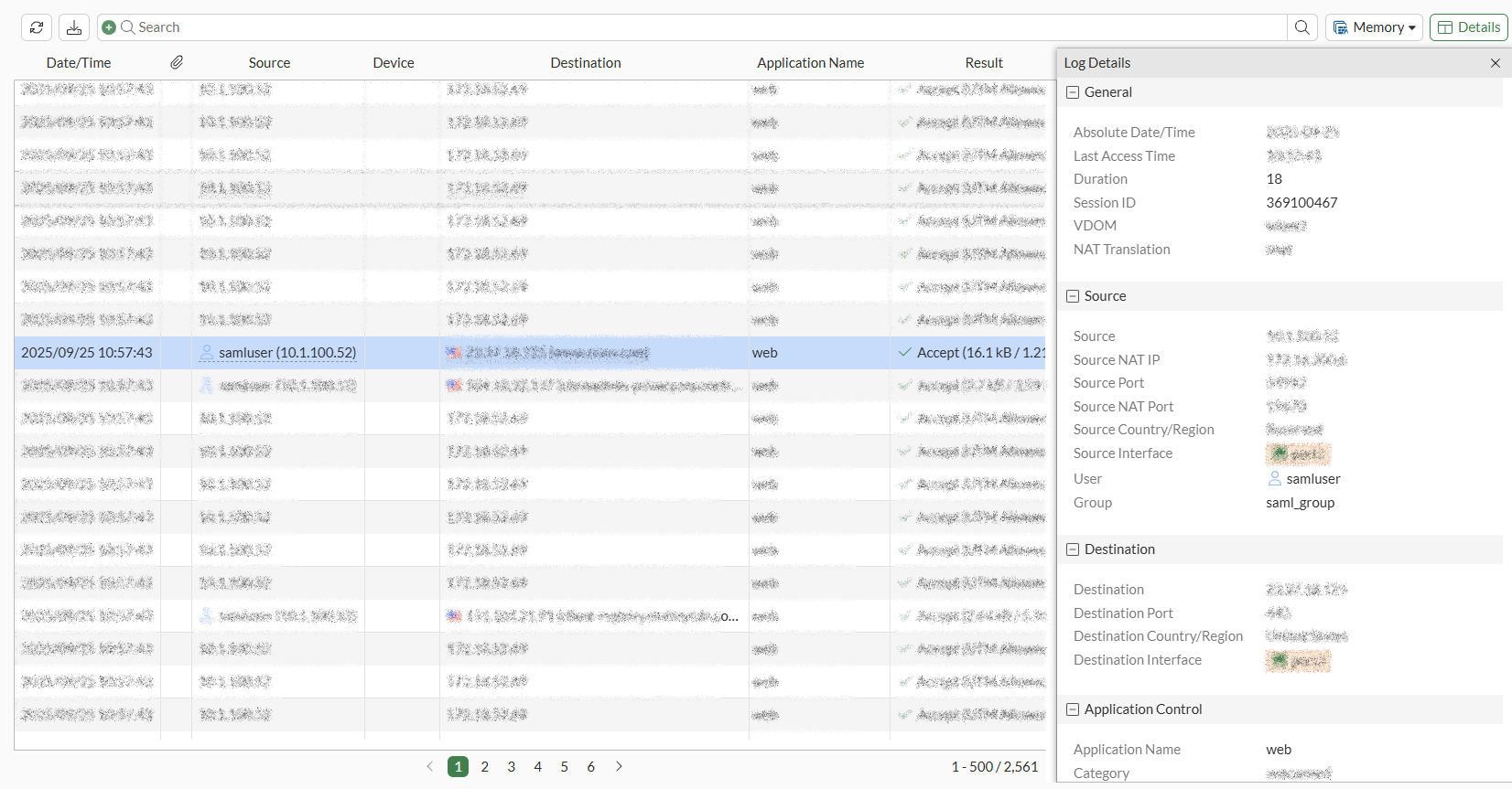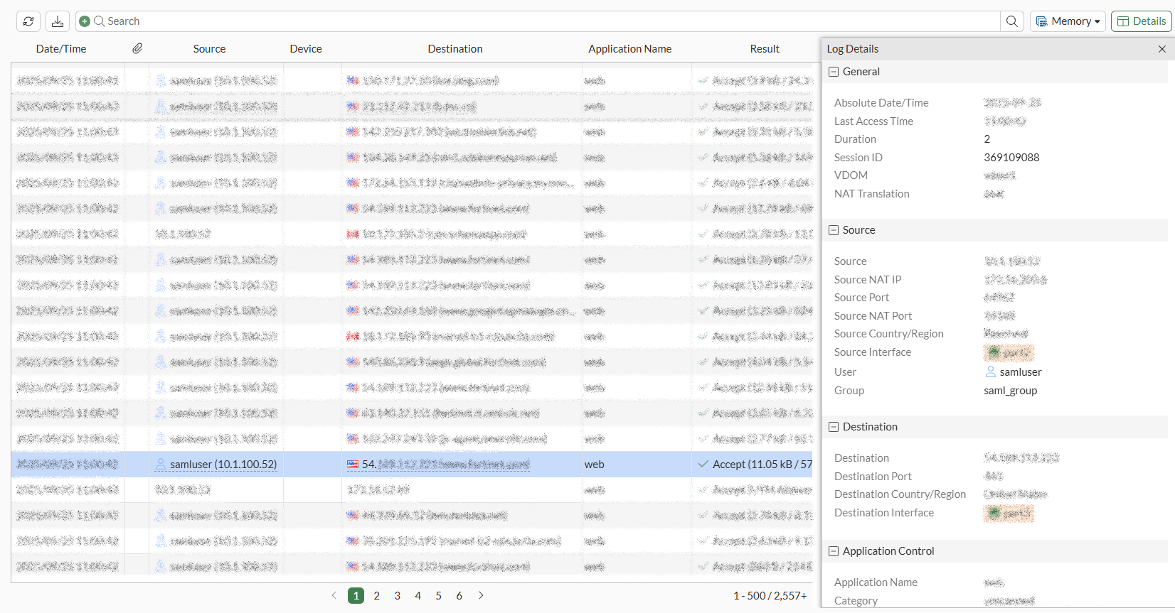 Check the traffic logs and note the unique session ID for the SAML log out request:
