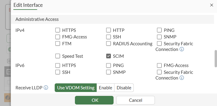 Allow SCIM access on an interface:
