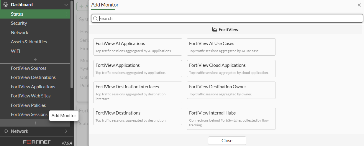FortiView Top Source and Top Destination Firewall Objects monitors
