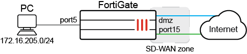 config system sdwan set status enable config zone edit "virtual-wan-link" next end config members edit 1 set interface "dmz" set gateway 172.16.208.2 next edit 2 set interface "port15" set gateway 172.16.209.2 next end end -