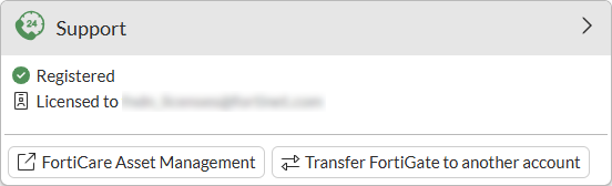 In the Support widget, click Transfer FortiGate to another account.