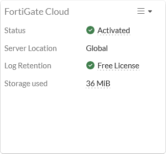In the FortiGate Cloud widget, click Not Activated > Activate.