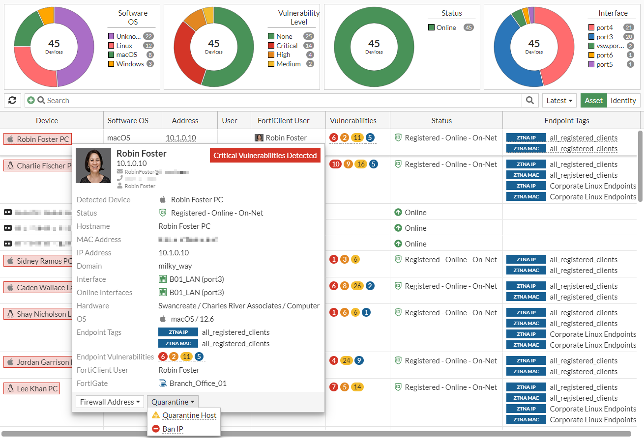 Go to Security Fabric > Asset Identity Center.