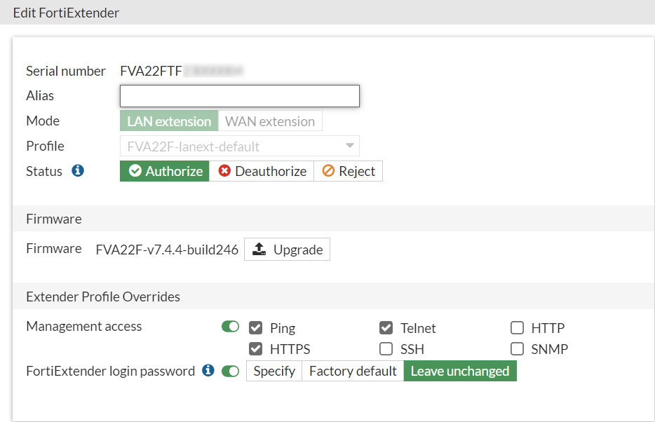 Apply the profile to FortiExtender and authorize the device