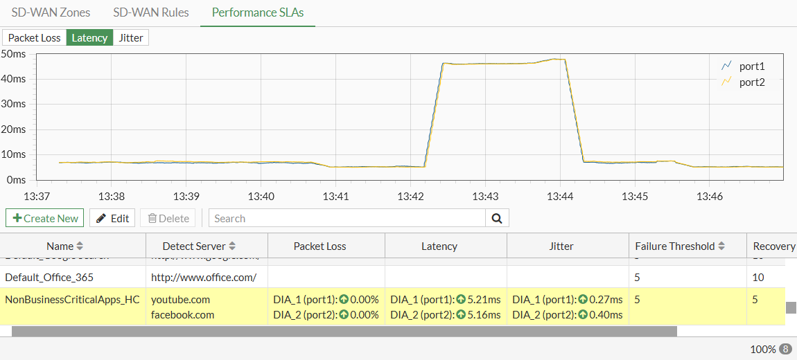 Go to Network > SD-WAN, select the Performance SLAs tab, and select each of the health checks from the list.