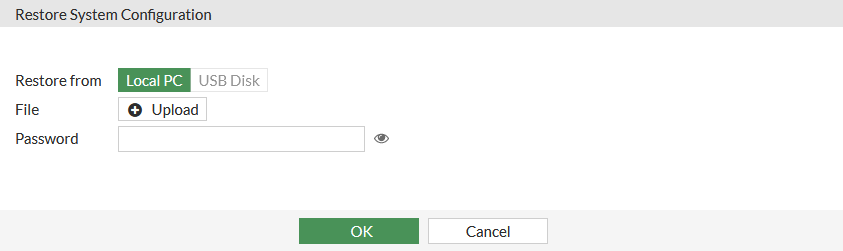 Upload the converted configuration file, then click OK. This will cause the FortiGate to reboot.