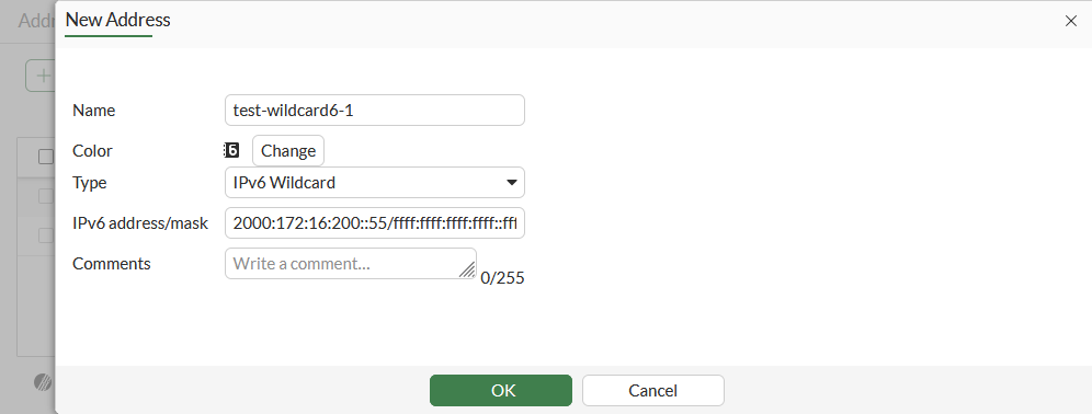 1. Go to Policy & Objects > Addresses and, on the IPv6 Address tab, click Create New.