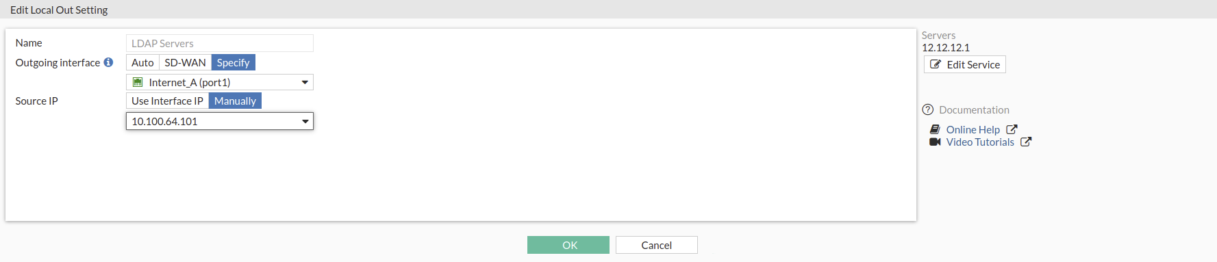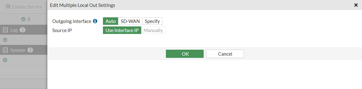 Configure the settings for Outgoing interface and Source IP.
