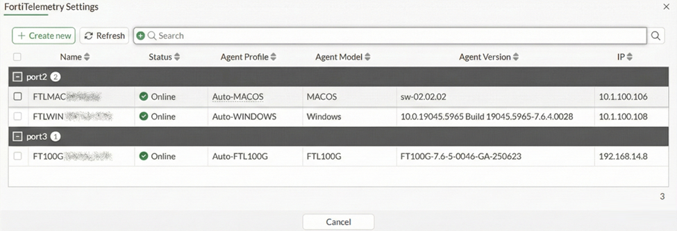 This topic applies only to a FortiGate acting as a FortiTelemetry Controller with FortiTelemetry enabled on the System > Feature Visibility page. For a summary of FortiTelemetry-related tasks that you can do in FortiOS, see FortiTelemetry. See also FortiTelemetry Administration Guide.