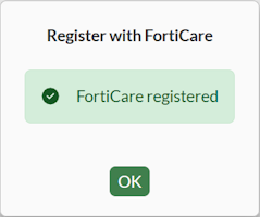 Register the FortiGate to FortiCare, and click OK. The next step in the wizard is displayed.