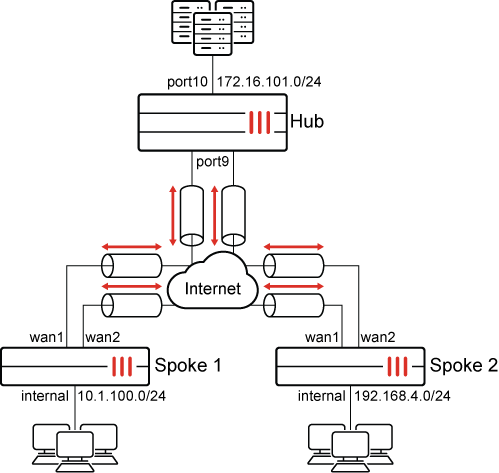 config system interface edit "spoke1" set ip 10.10.10.1 255.255.255.255 set remote-ip 10.10.10.254 255.255.255.0 next edit "spoke1_backup" set ip 10.10.10.2 255.255.255.255 set remote-ip 10.10.10.254 255.255.255.0 next end -