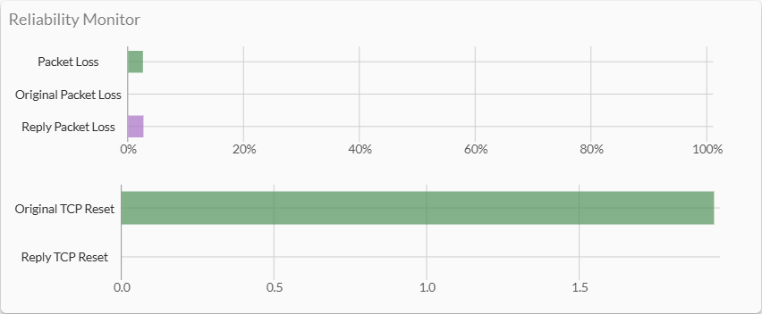 Application reliability monitor: Shows packet loss and abrupt connection termination by TCP reset.