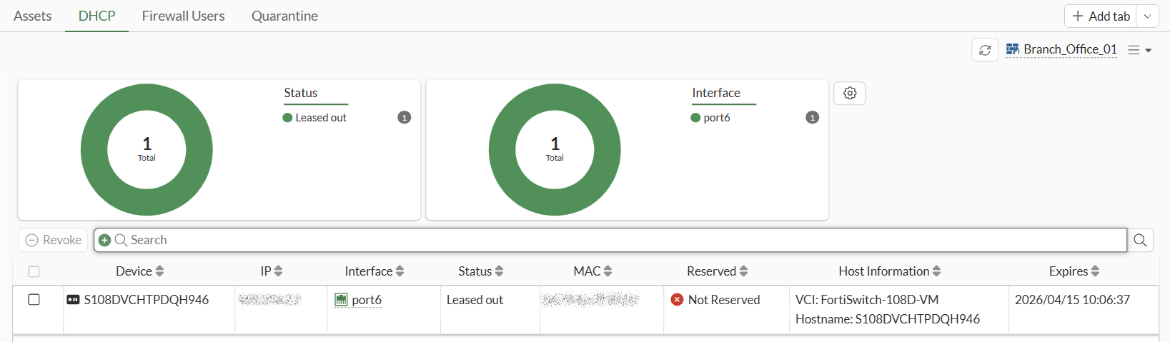 The DHCP monitor shows all the addresses leased out by FortiGate's DHCP servers. You can use the monitor to revoke an address for a device, or create, edit, and delete address reservations.