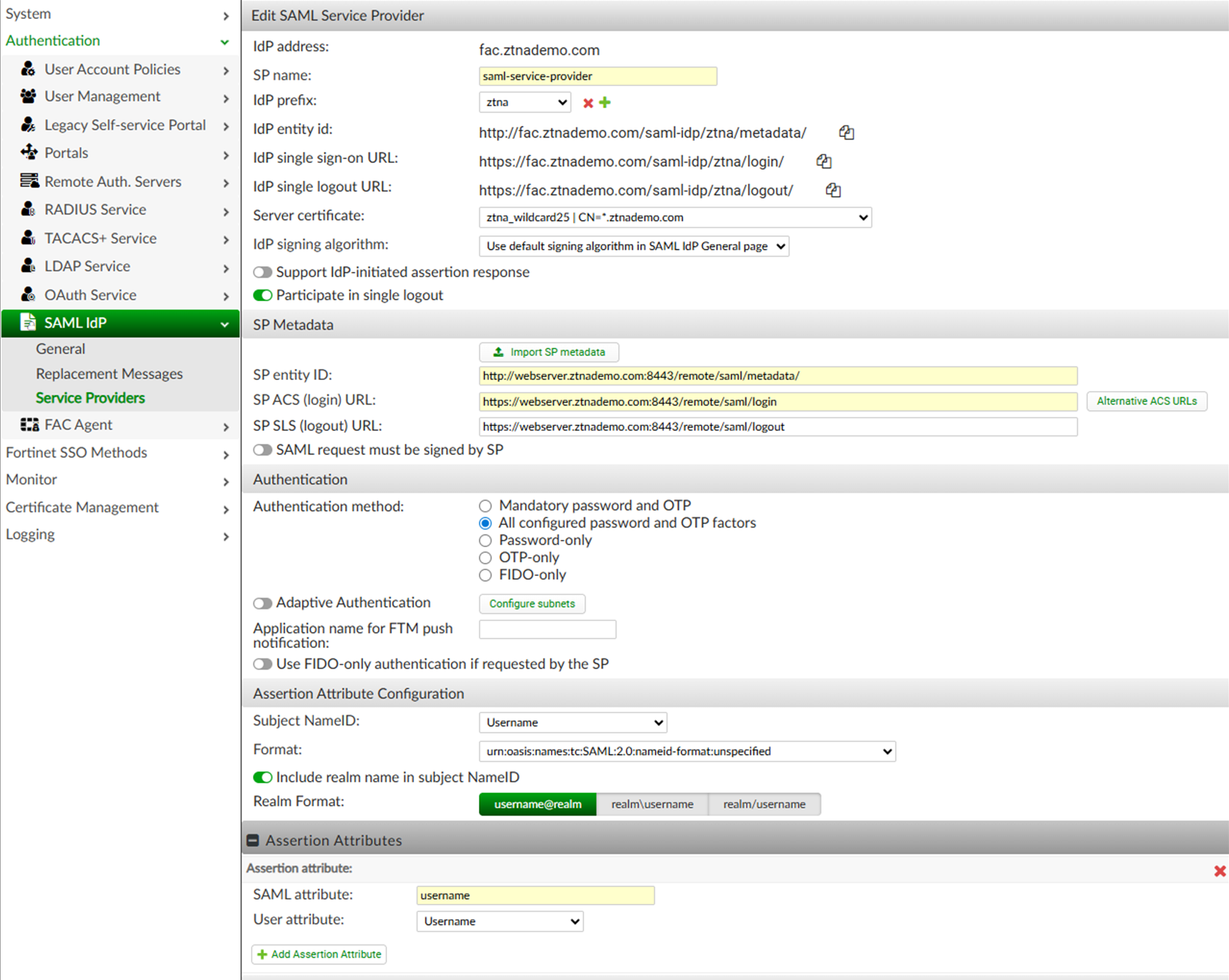 set single-sign-on-url "https://webserver.ztnademo.com:8443/remote/saml/login"