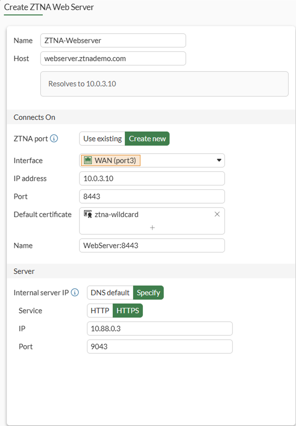 Set Name to ZTNA-Webserver.