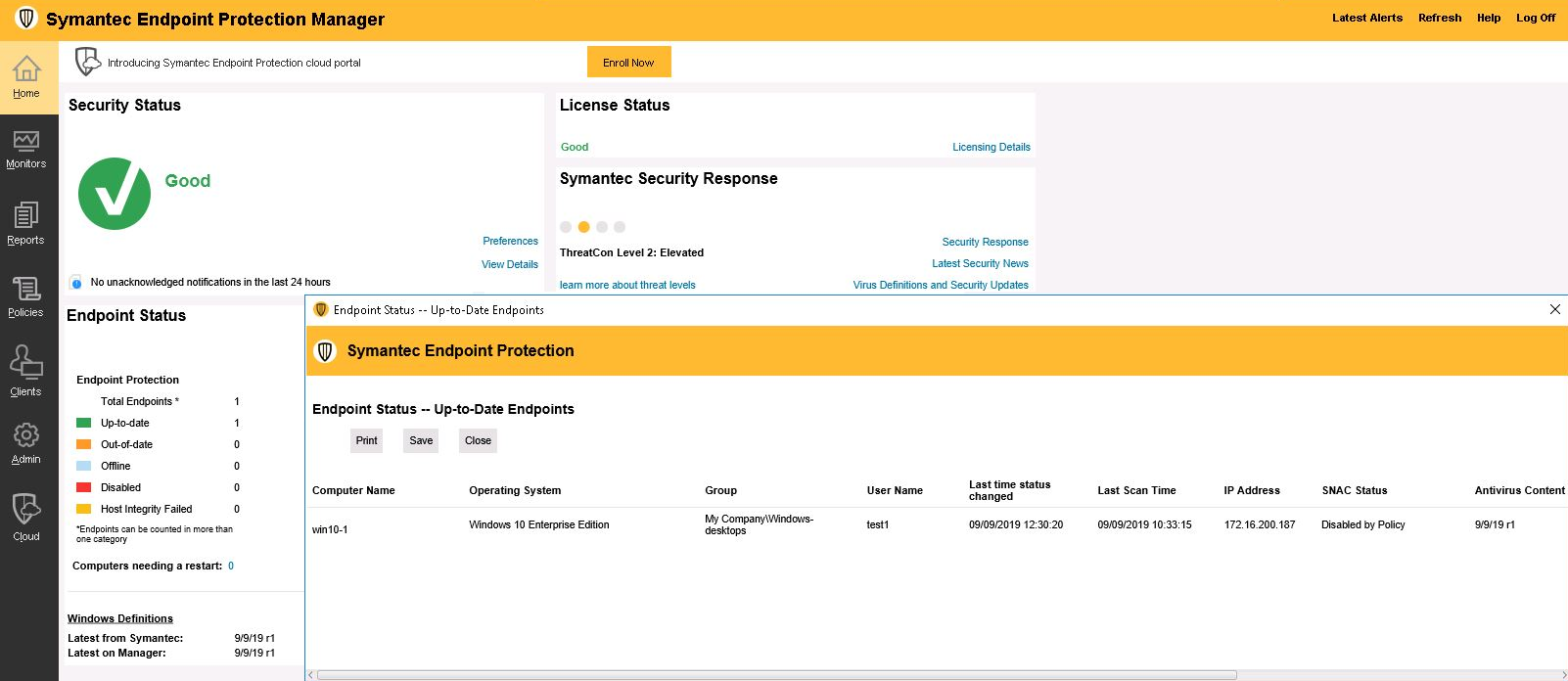- On the client PC, check that it is managed by SEPM to access the Internet.