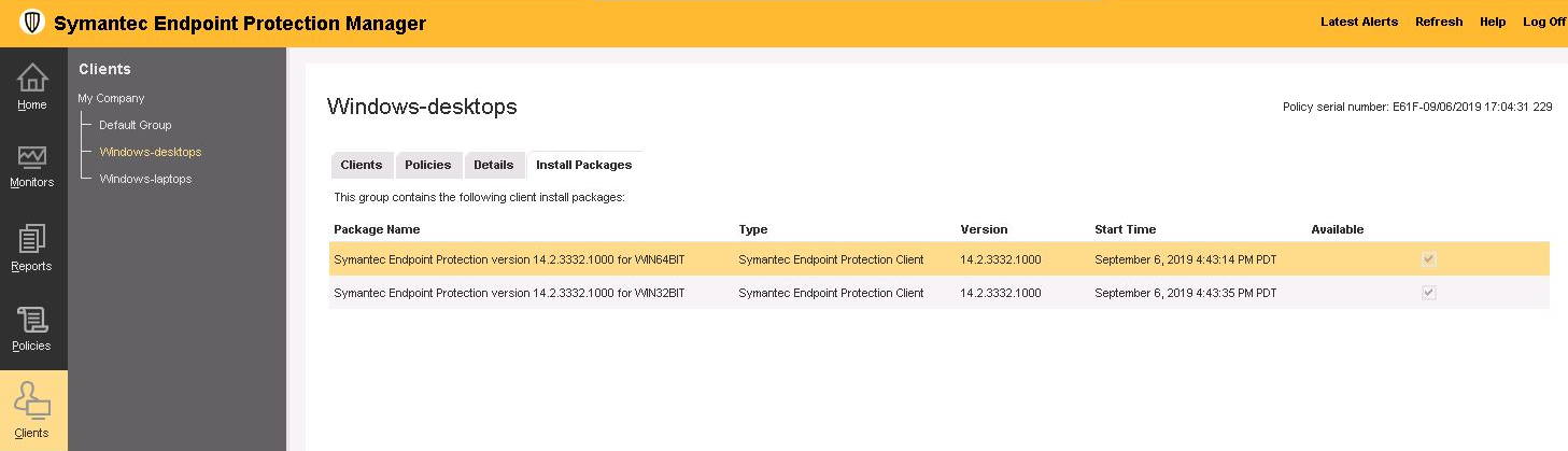 - In SEPM, create client packages for client hosts and group them into SEPM groups.