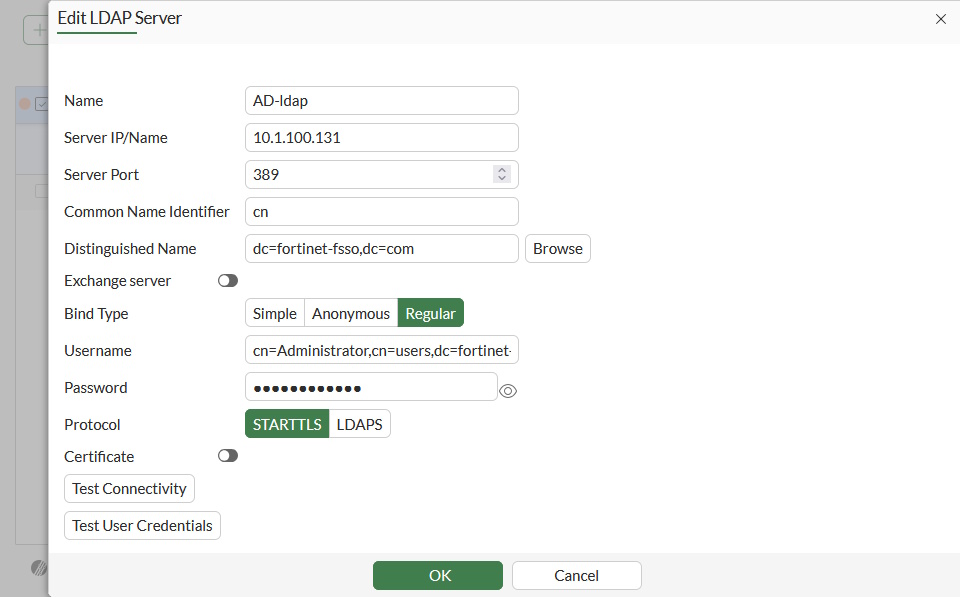 set username "cn=Administrator,cn=users,dc=fortinet-fsso,dc=com"