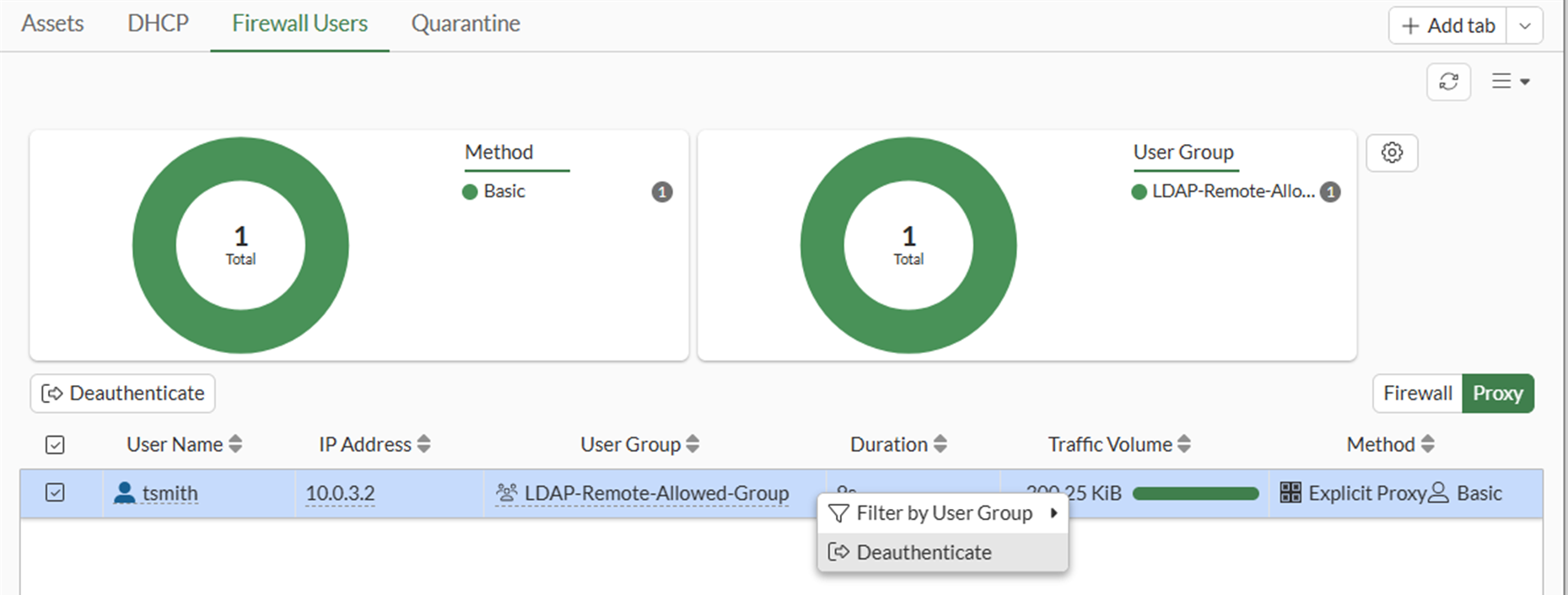 1. Go to Dashboard > Assets & Identities > Firewall Users and select the Proxy table.