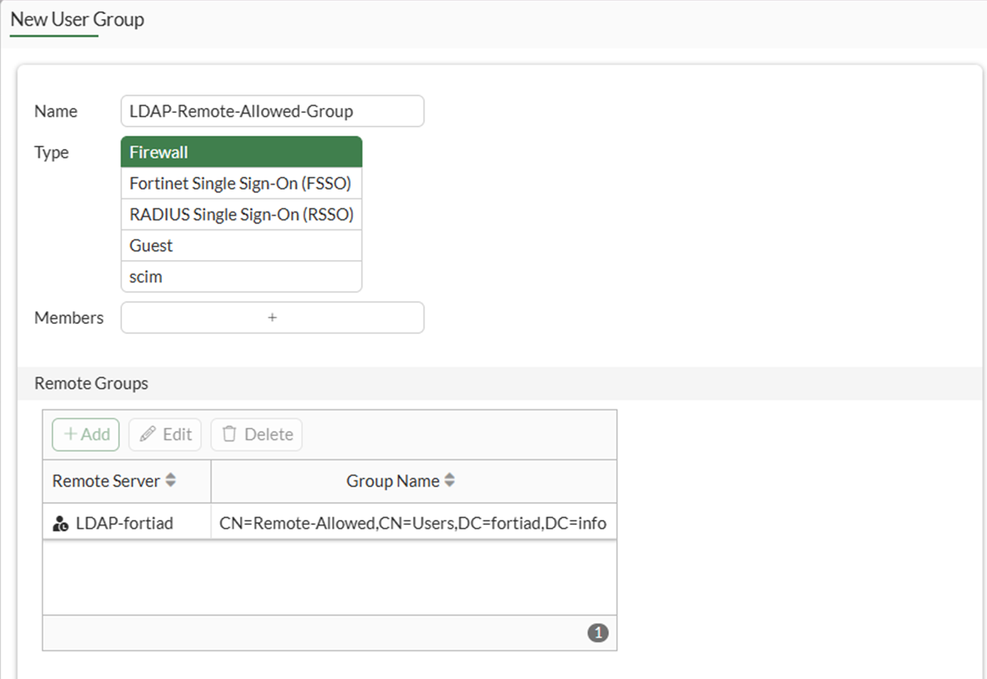 set group-name "CN=Remote-Allowed,CN=Users,DC=fortiad,DC=info"