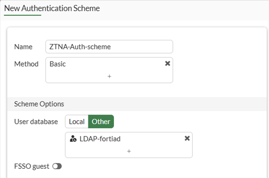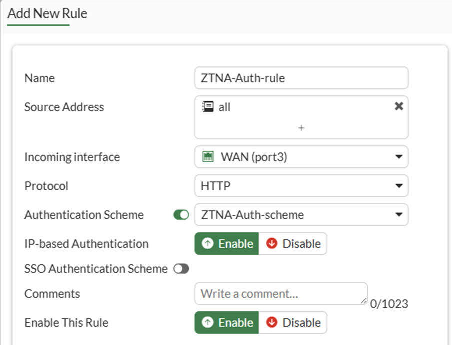 6. Enable Authentication Scheme and select ZTNA-Auth-scheme.