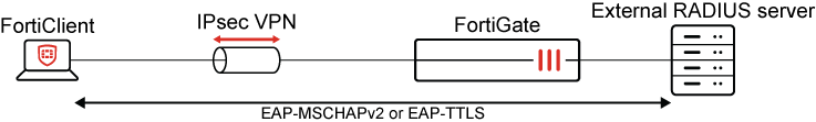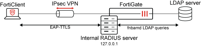 If EAP-TTLS is used and no external RADIUS server is configured for the VPN (like when LDAP is used), the EAP-TTLS tunnel terminates on the FortiGate's own internal RADIUS server.
