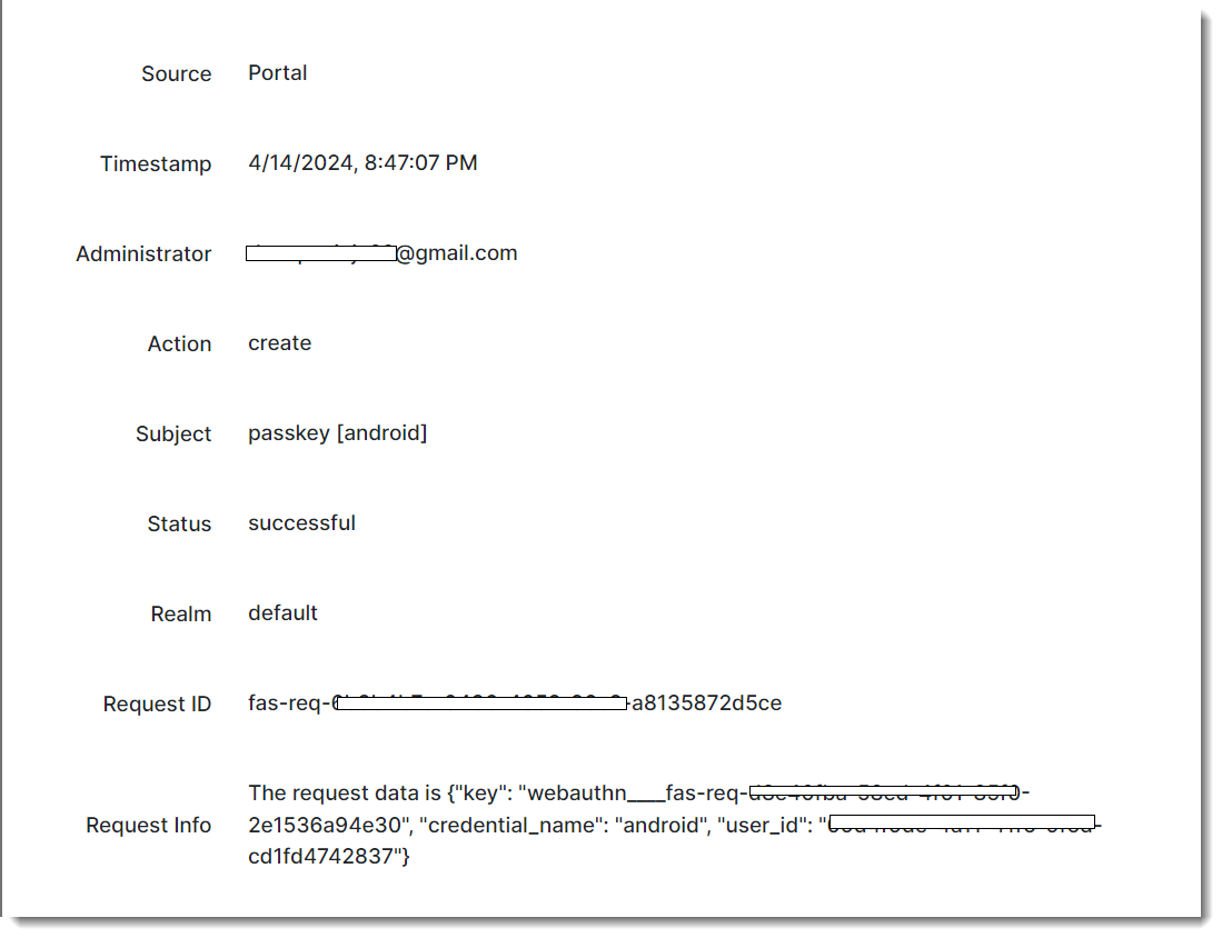 Viewing logs for passkeys