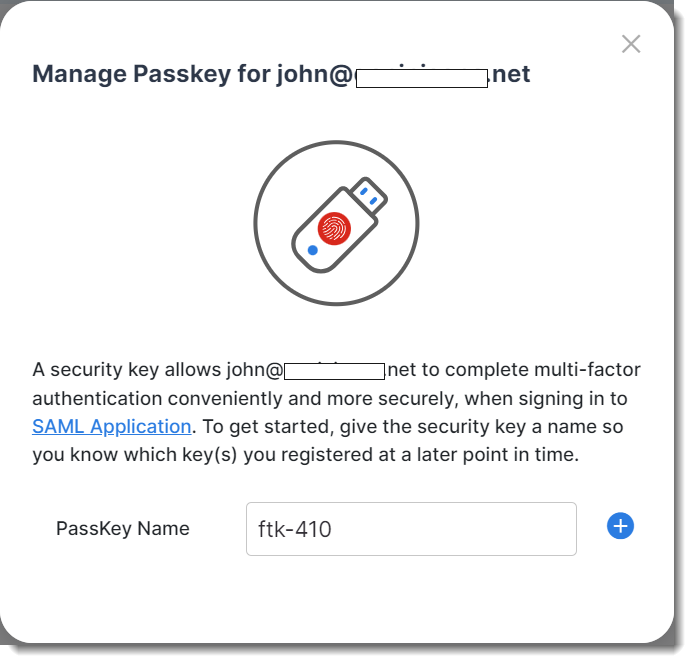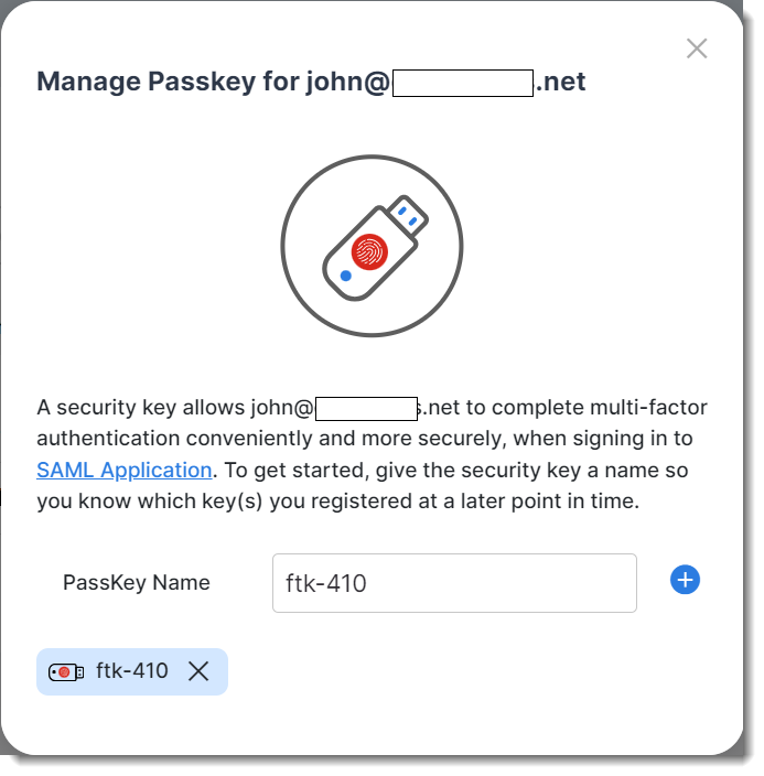 - Provide a name for the passkey (e.g., ftk-410 in the example shown in the following screen shot).