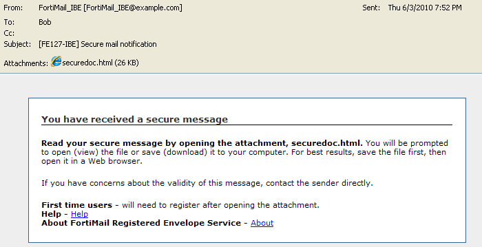 If this is the first time the recipient receives such a notification, the recipient must follow the instructions and links to register on the FortiMail unit before reading email.