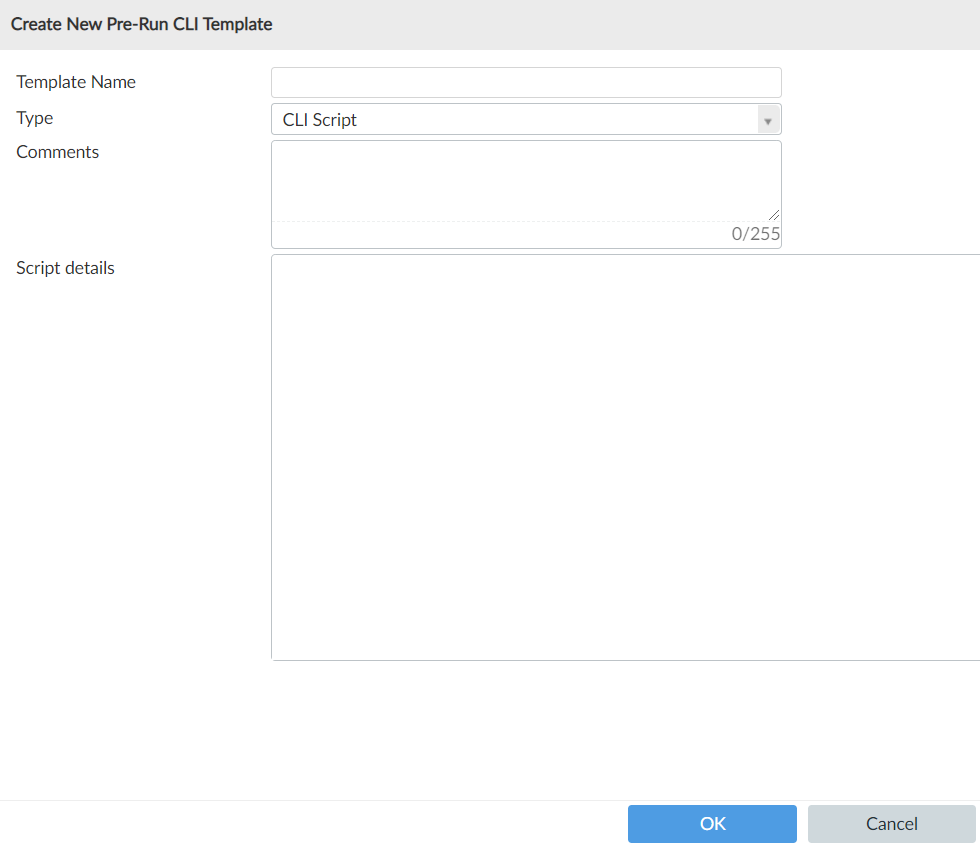 - Click Create New , and select either Pre-Run CLI template or CLI Template.