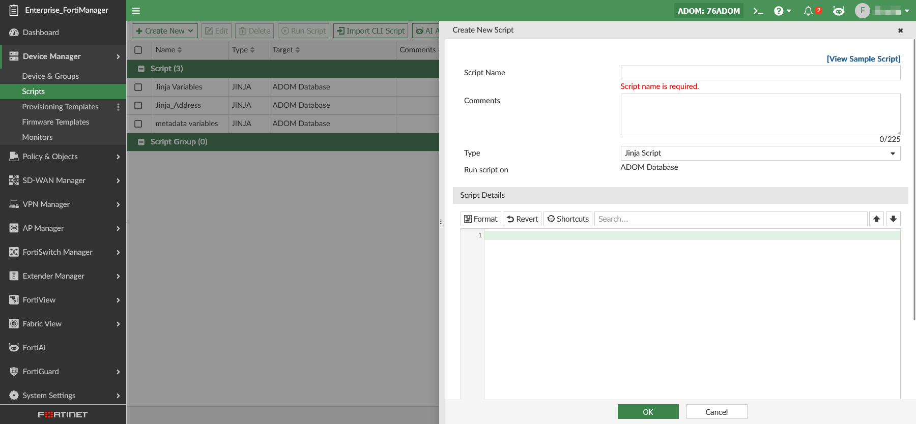 To create Jinja scripts on FortiManager: