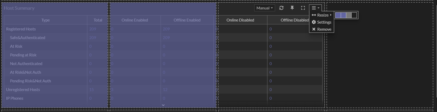 All Widgets have a fixed height, but users can adjust the width set to the number of columns they should span.