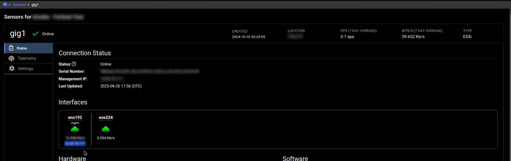 On the Sensors details page, each interface now displays its IP address—if that information is included in the API response. This is especially useful when the interface is configured as a NetFlow collector.