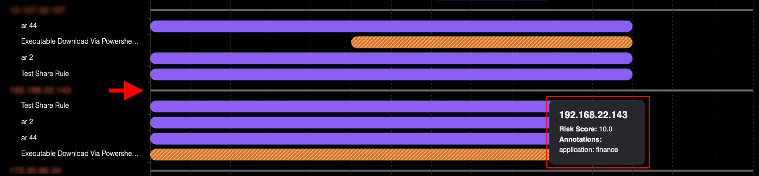 Hover over the line next to the IP label to view its risk score. Any annotations related to the IP will be displayed here