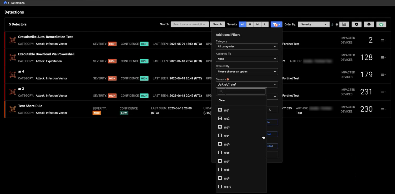 A new filter is added to the Detections page, allowing multiple sensors to be selected.