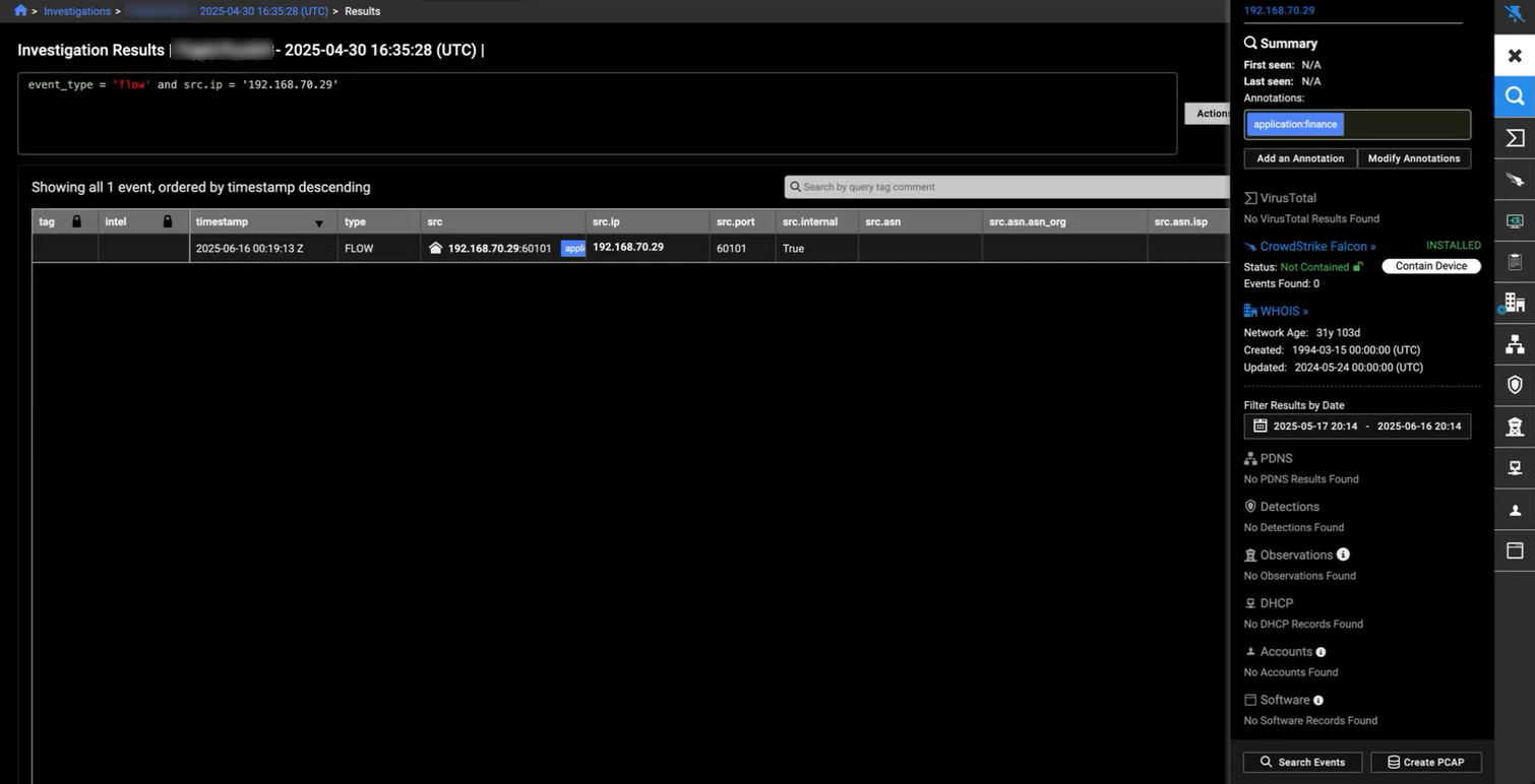 Click on the widget title to go the underlying query object and view the particular events for that investigation.