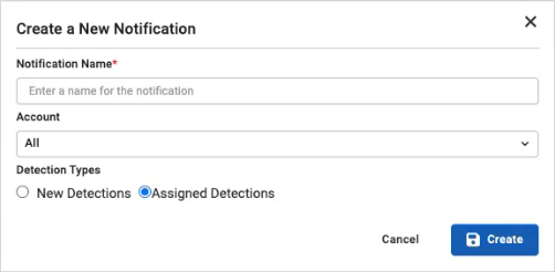 When adding a new notification, you can choose to add a New Detections or Assigned Detections.